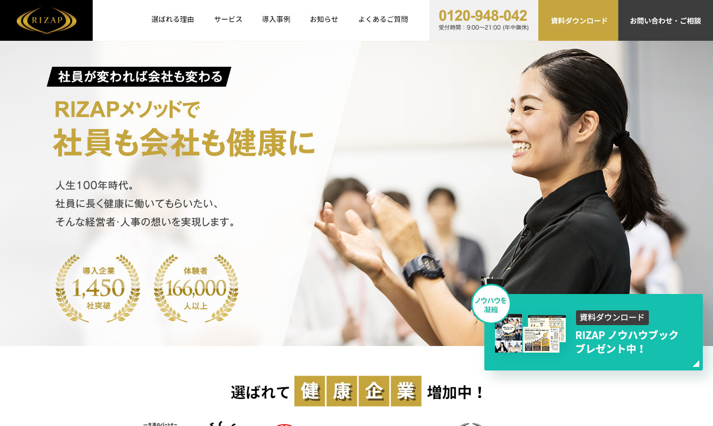 RIZAPの法人向けプログラム「RIZAP 法人」のサイトを制作しました。