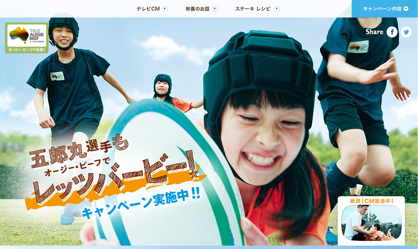 「オージービーフ 五郎丸選手もオージー・ビーフでレッツバービー!キャンペーン」のサイトを制作しました。