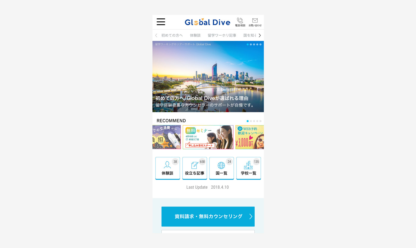 留学・ワーキングホリデーをサポートする「Global Dive」のサイトを制作いたしました。
