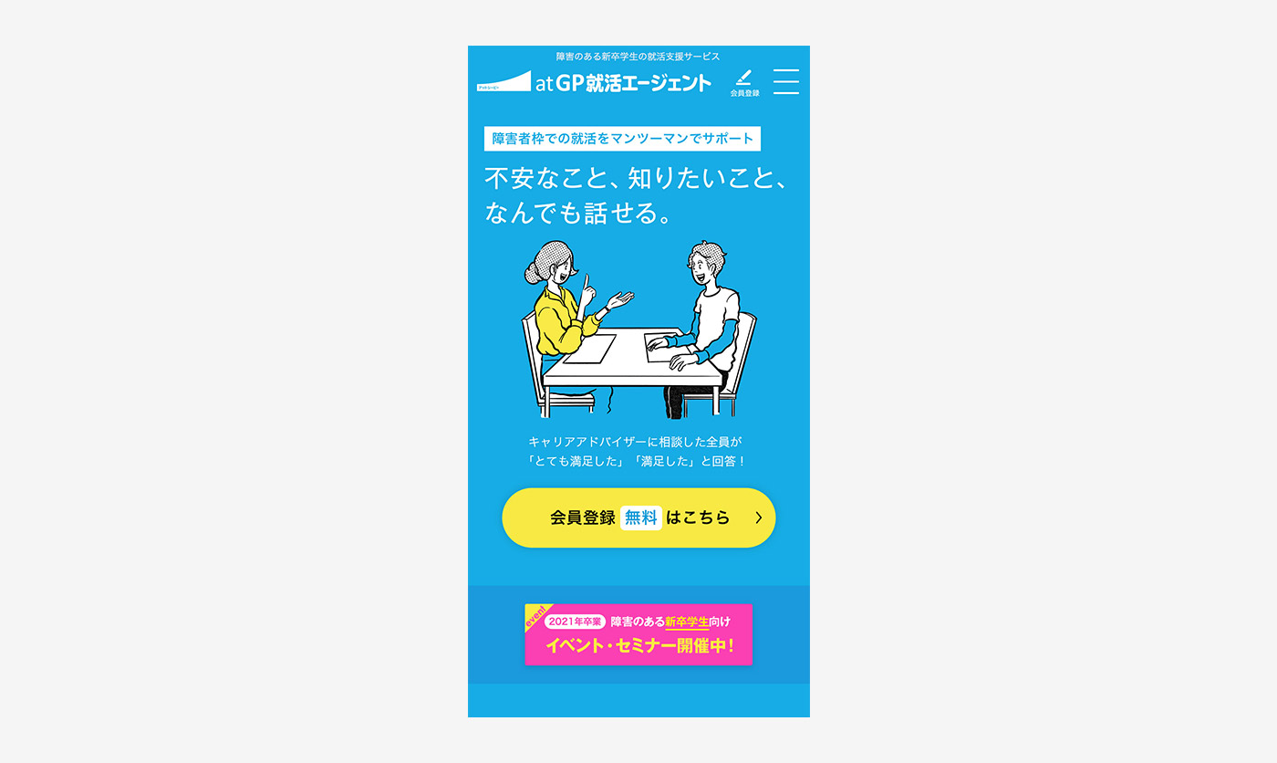障害者のある新卒学生向けのエージェントサービス「atGP就活エージェント」のサイトを制作しました。