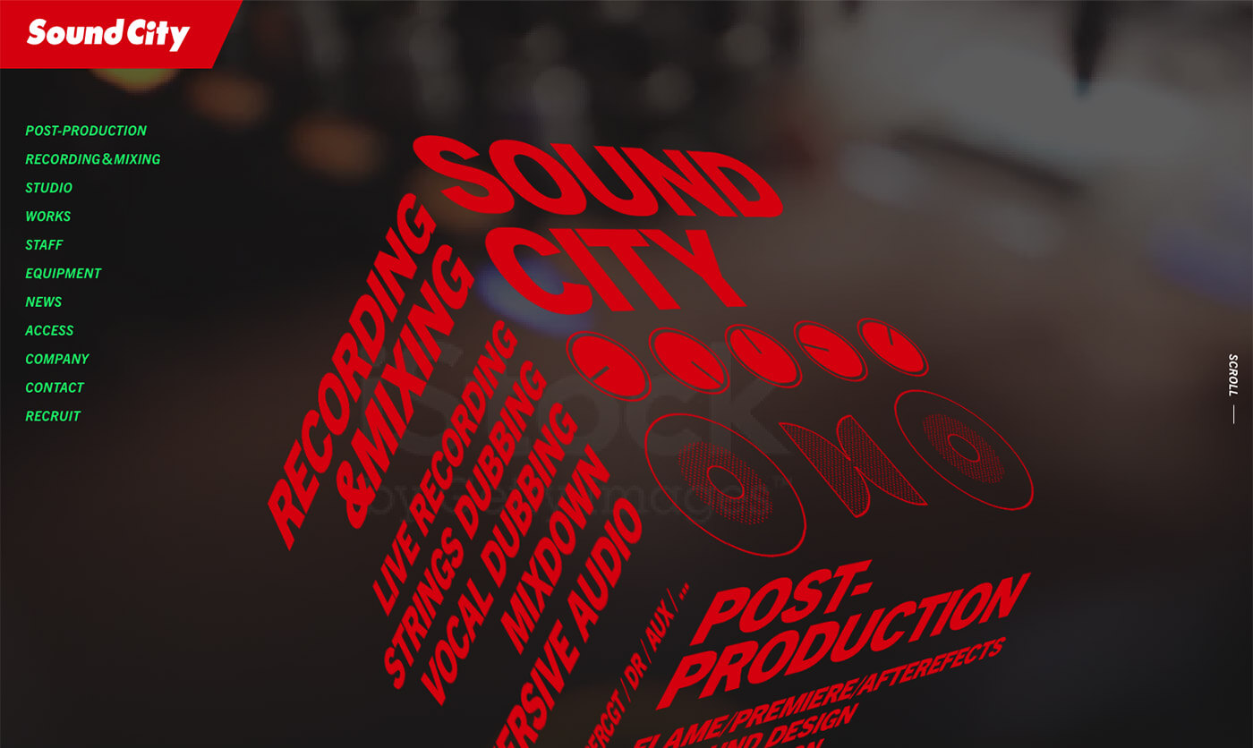 オーディオ・ビデオの総合ポストプロダクション「サウンド・シティ」のコーポレートサイトのトップページデザインを制作しました。