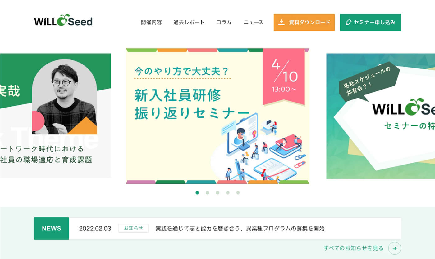 株式会社ウィル・シードの「新入社員育成フォーラム」サイトのトップページデザインを制作しました。