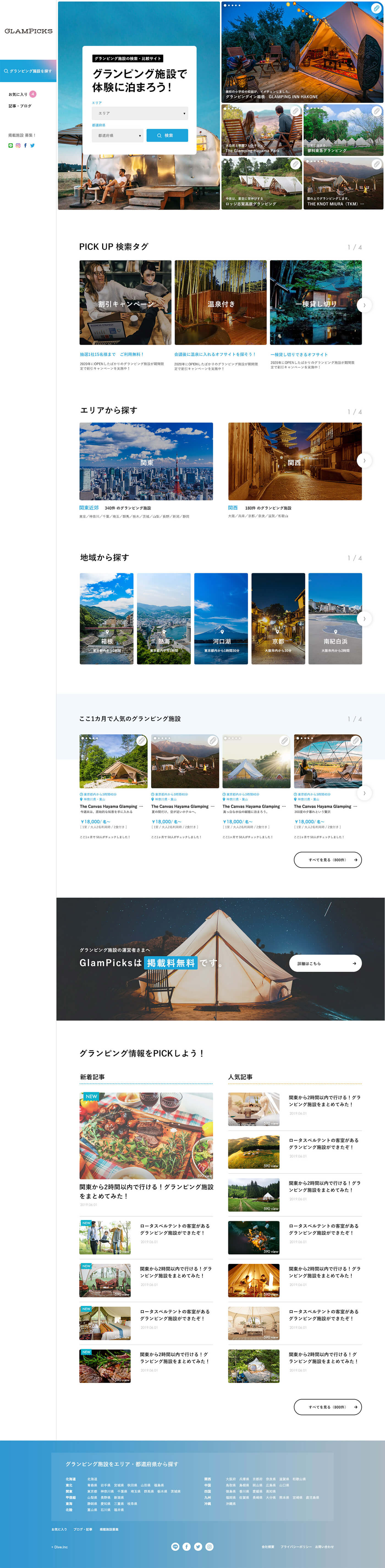 グランピング施設の検索・比較サイト「GLAMPICKS(グランピックス)」のサイトを制作しました。