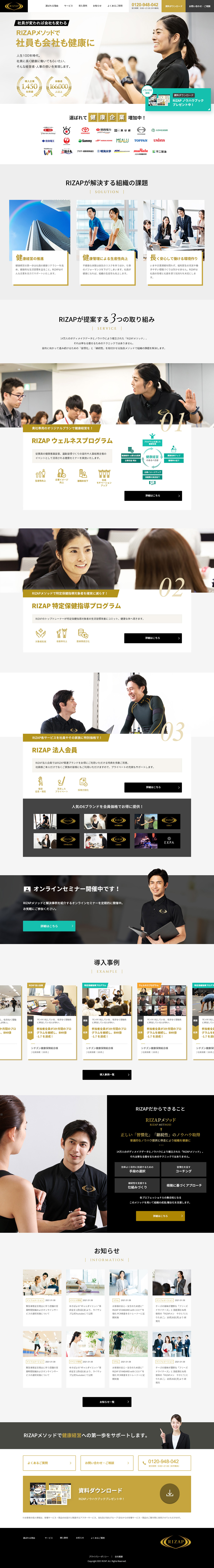 RIZAPの法人向けプログラム「RIZAP 法人」のサイトを制作しました。