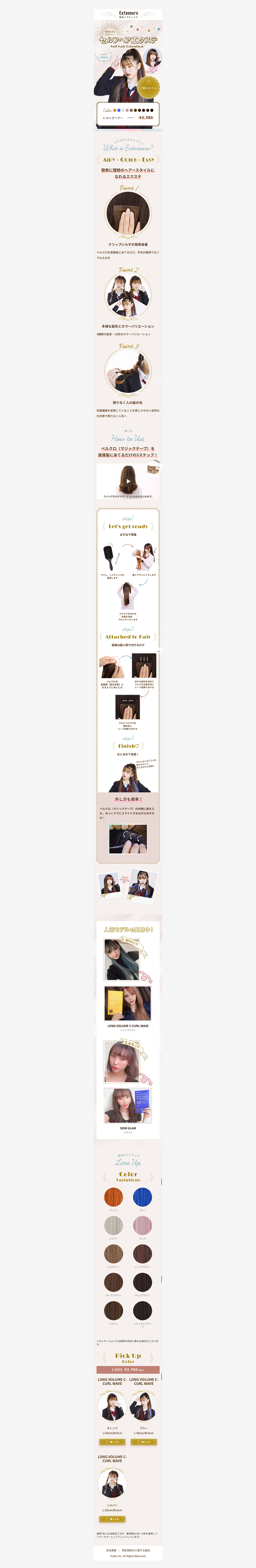 着脱式エクステ「Extexsuru(エクステエクスル)」のランディングページを制作しました。