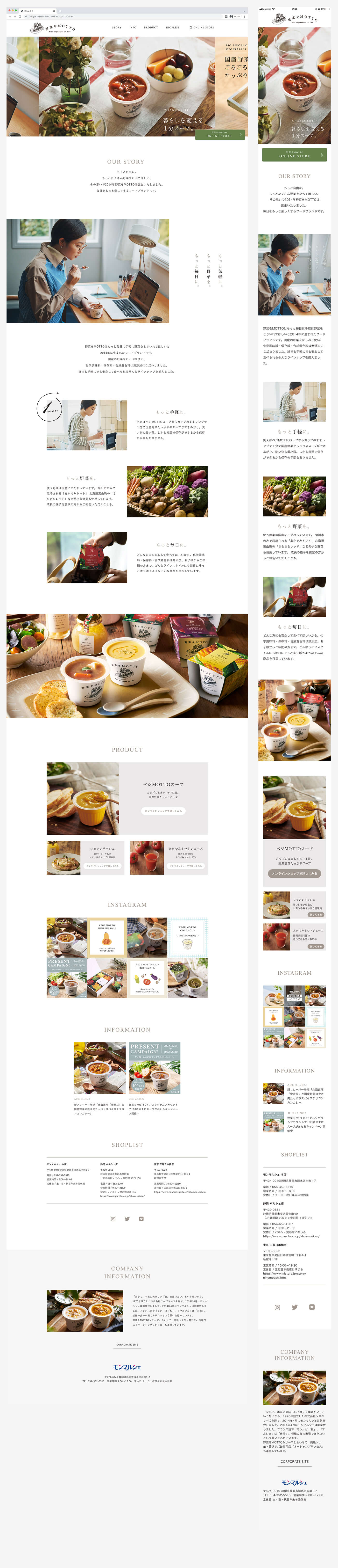 株式会社モンマルシェのスープ専門フードブランド「野菜をMOTTO」のブランドサイトのトップページデザインを制作しました。